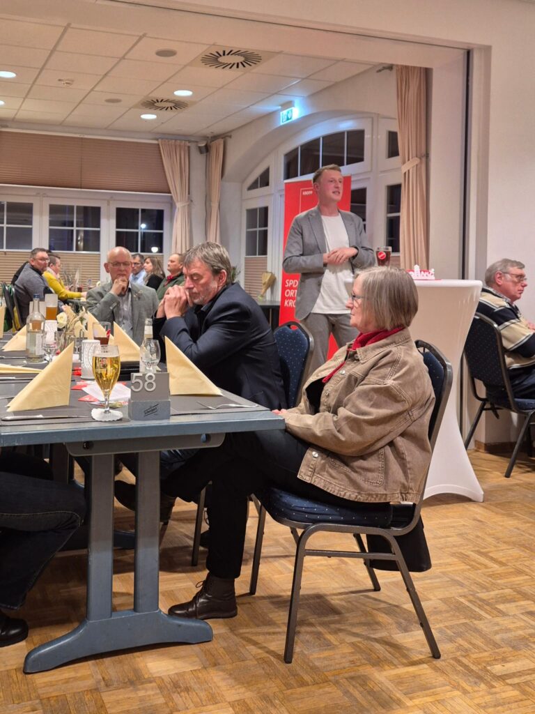 Nachdem das Grünkohlbuffet von allen Teilnehmer ausreichend genossen worden war, gab es für einen Teilnehmer einen besonderen Moment: die Ehrung von Dieter Mahrt für beeindruckende 55 Jahre Mitgliedschaft in der SPD und im Ortsverein in Kropp – ein starkes Zeichen für Verbundenheit, Verlässlichkeit und gelebtes Engagement.